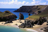 To balance the cool colours in the seawater, marine artists often add pink reflections of a sunset, or sunrise. Reddish brown rocks also add contrast. To make a pleasing composition, where there is an area of rocks, or headland, to one side of a painting, a smaller area of rock, or headland, should be added as a counterbalance on the other side. In the painting with the figure, the hair of the woman counterbalances the rocks to some extent.